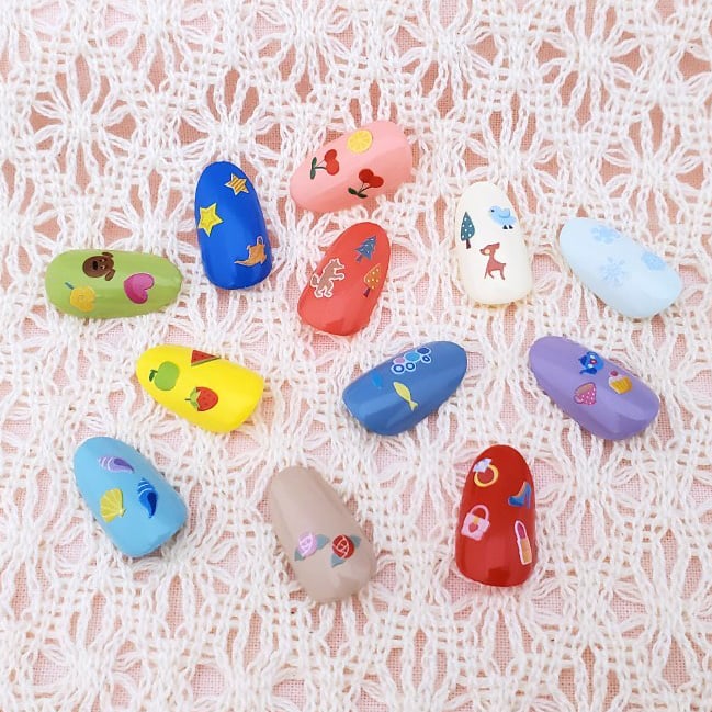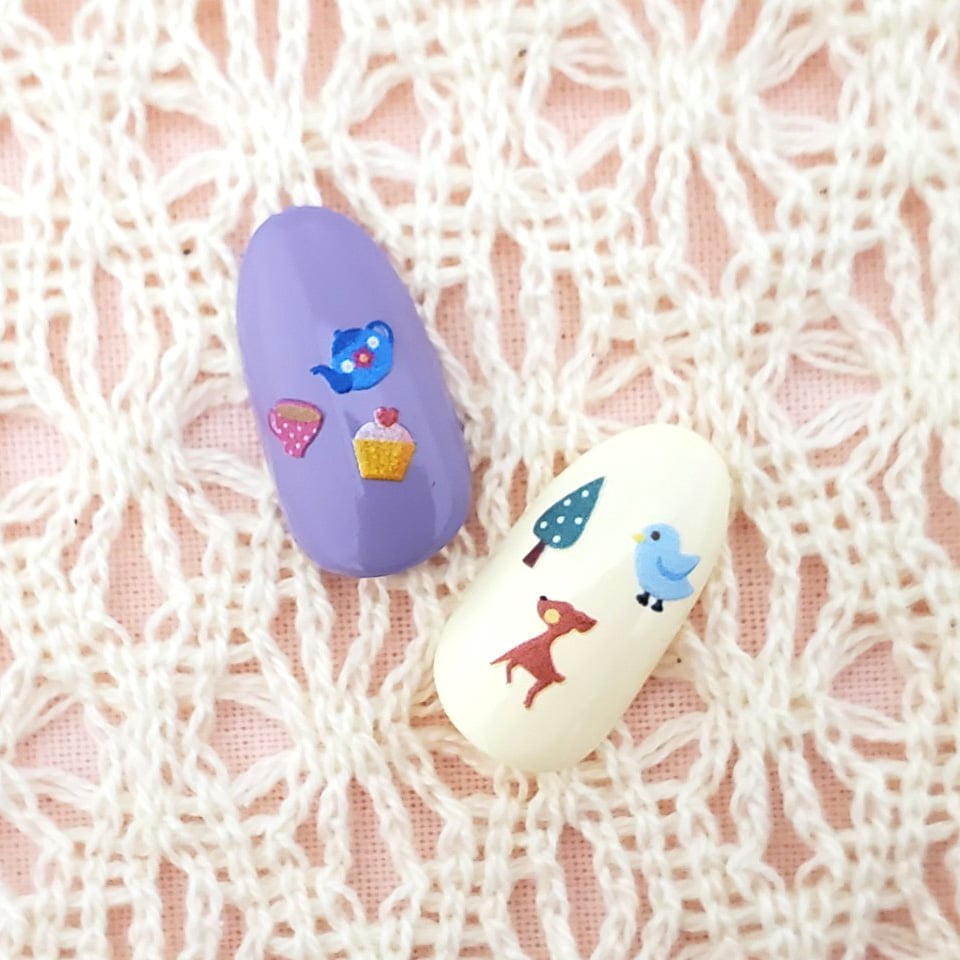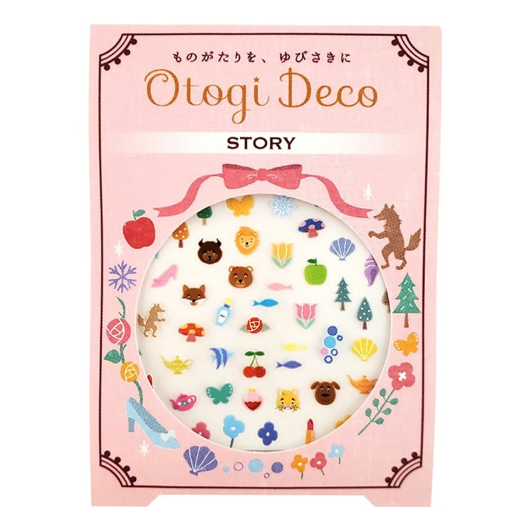 ものがたりに出てくる動物やアイテムを集めたネイルアート用シール。